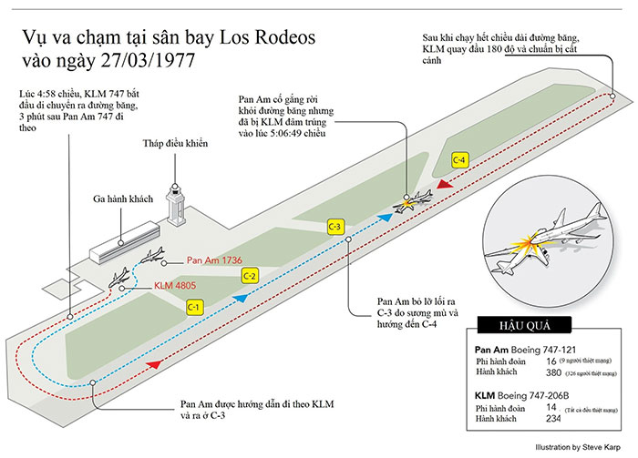 Ngày 27/3/1977, vào lúc 5h06 chiều theo giờ địa phương, chiếc Pan Am 1736 và KLM 4805 đã va chạm mạnh trên đường băng của Sân bay Los Rodeos ở Quần đảo Canary.