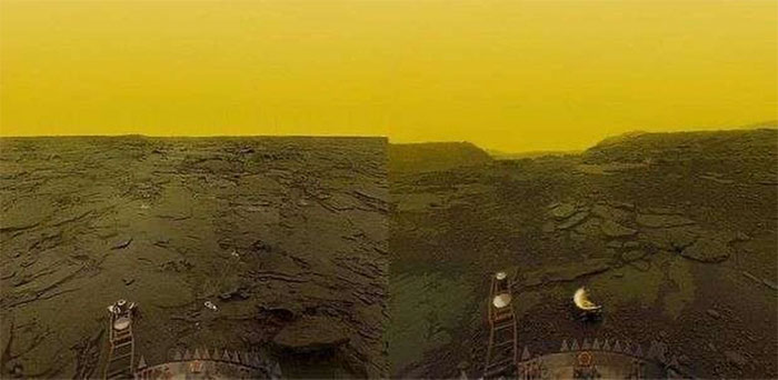 Bề mặt của sao Kim được nhìn thấy bởi các tàu thăm dò Venera 13 và Venera 14. (Ảnh: Cơ quan Vũ trụ Nga).