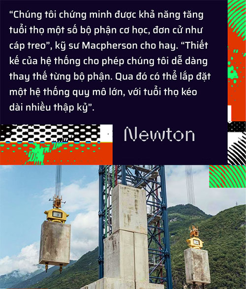 Thiết bị lưu trữ năng lượng một cách tối ưu vẫn được tung hô như phương pháp cứu nguy cho ngành năng lượng sạch. Một số chuyên gia mong muốn giải quyết vấn đề với những hệ thống pin lithium-ion đang ngày một hoàn thiện. Có người lại cho rằng hydro sạch mới là tương lai ngành năng lượng. Nhưng rồi, một ý kiến thứ ba xuất hiện, với mong muốn tận dụng sức mạnh vô hình vẫn đang tồn tại quanh ta: lực hấp dẫn.