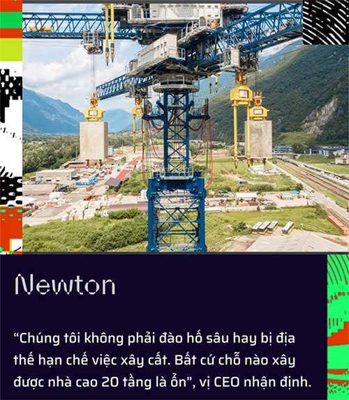 Trong khi Gravitricity rà soát lớp vỏ Trái Đất, những người khác vẫn nuôi tham vọng dựng tháp cao. Tại vùng thung lũng miền Nam Thụy Sĩ, đứng sừng sững một công trình làm từ bê tông và thép của Energy Vault, một công ty đi đầu trong sản xuất pin trọng trường. Tòa tháp của họ cao tương đương tòa nhà 20 tầng.